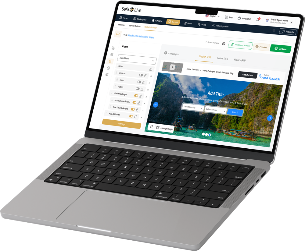 Safa OTA is a cloud platform designed specifically for travel agencies. It enables businesses to create professional websites effortlessly using Drag & Drop technology, which requires no prior technical expertise.
